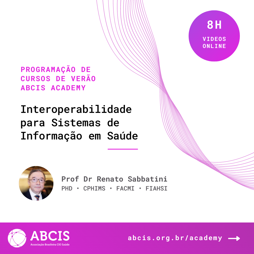 Proporcionar uma introdução compacta e intensiva às noções, aplicações, tecnologias, padrões e projetos nacionais de interoperabilidade entre sistemas de informação à saúde, incluindo padrões funcionais, semânticos e operacionais em uso no mundo e no Brasil, barramentos de interoperabilidade (HIE), e certificação de interoperabilidade (HL7, IHE, etc.).